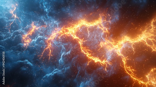 A captivating cosmic scene of thunderous clouds and vibrant energy in deep space.