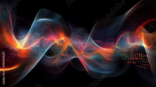 A captivating energy flow crafted with dynamic light waves on a dark canvas captures the eye with its vibrant hues and intricate patterns.