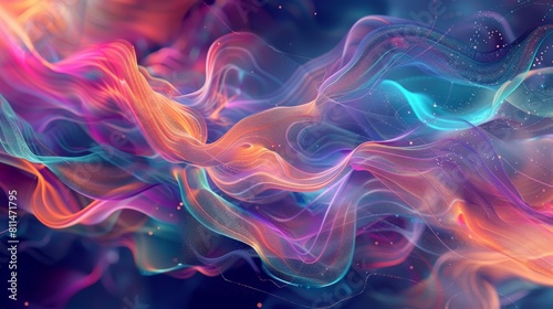 A captivating generative art design illustrating fluid data flow, with vibrant colors and dynamic shapes intertwining to form a mesmerizing tapestry of connectivity and movement