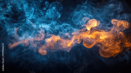 A captivating swirl of blue and orange smoke creating an abstract, dynamic visual effect.