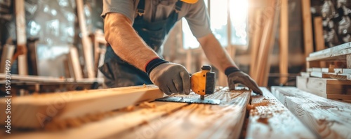 a carpenter and joiner working on a wooden board
