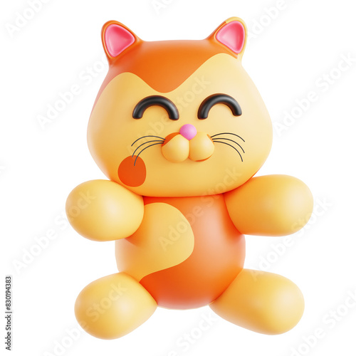 A cartoon cat with a big smile on its face. The cat is orange and has a pink nose