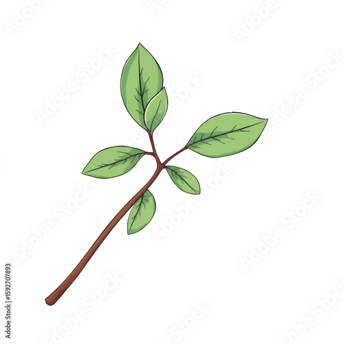 A cartoon drawing of a twig with green leaves isolated art on transparent background
