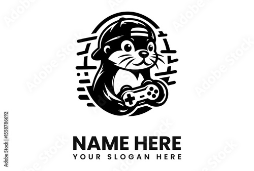 A cartoon otter wearing a cap, holding a game controller, ready to play.