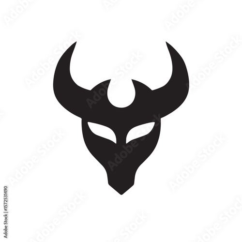 A cartoon vector illustration of a black devil mask with horns on a white background, perfect as a Halloween symbol or logo design