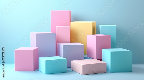 A cascade of colorful cubes creates a mesmerizing display of abstract geometry, set against a pastel backdrop of blue, pink, and yellow.