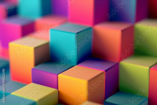 A cascade of colorful geometric cubes creates a vivid and dynamic abstract composition, drawing the eye to its playful arrangement and vibrant hues.