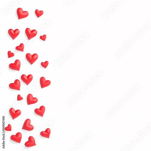A cascade of red hearts symbolizes love and affection in a minimalist digital artwork.