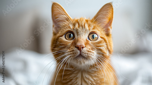 A cat is laying on a white blanket with its head tilted to the side. The cat appears to be relaxed and comfortable in its surroundings