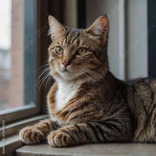 a cat sitting on a rug in front of a window Portrait of beautiful cat exploring. Generative Ai Gray cat sitting Black and white photo of a cat on the floor