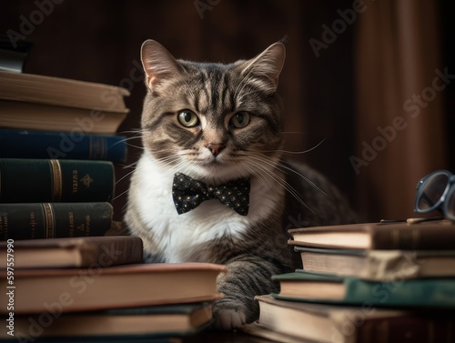 A cat wearing a bow tie, looking scholarly and sophisticated.