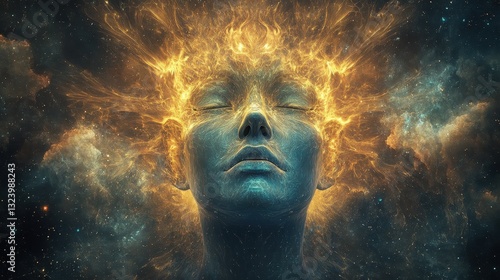 A celestial being with a face that warps slightly inwards, yet its mirrored structure creates an otherworldly harmony