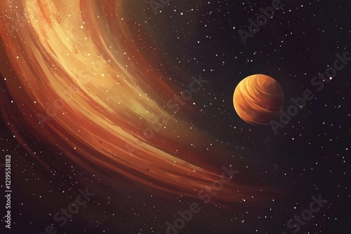 A Celestial Body Orbits Within a Starry Galaxy