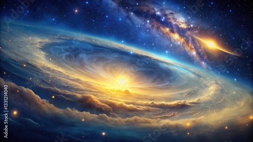 A Celestial Tapestry Whirlwind of Clouds and Cosmic Dust Enveloping a Radiant Sunrise on an Extraterrestrial Planet