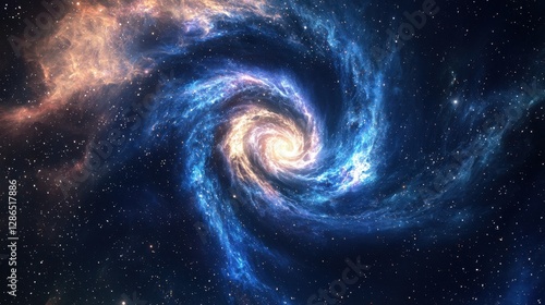 A celestial whirlpool of nebula gases spirals through deep space, forming new constellations