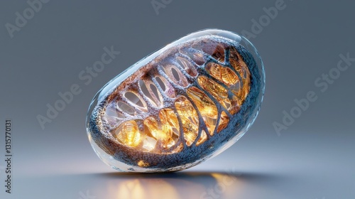 A cell mitochondria small, translucent object with a yellowish glow