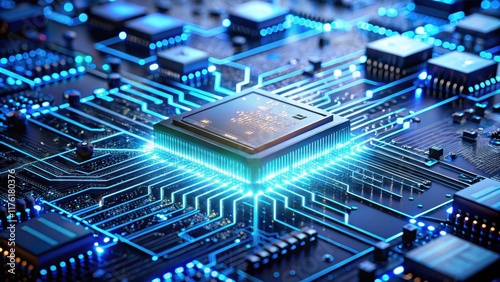 A Central Processing Unit Glowing with Power, Illuminating the Interconnected Network of Electronic Circuits on a Motherboard
