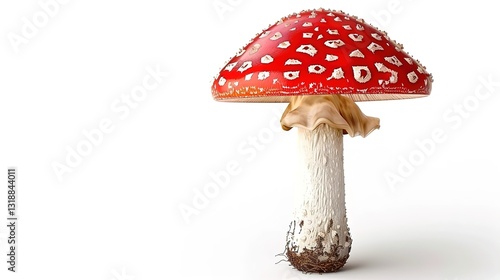 A champignon and a mushroom are isolated on a clean white background with a clipping path applied. The image showcases a full depth of field, highlighting the detailed texture and shape of these fungi