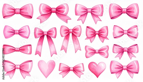 A charming collection of pink bows in various shapes. Ideal for feminine designs,