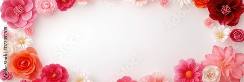 A charming design featuring a delicate border of pink and red flowers on a white background, perfect for celebrating Valentine's Day.