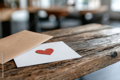 A charming heart card lies on a rustic wooden table, inviting feelings of love and affection, ideal for expressing sentiments and celebrating connections.