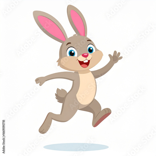 a cheerful, animated bunny character with large, expressive blue eyes and a wide smile showing two prominent front teeth