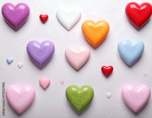 A cheerful arrangement of various-colored hearts, displaying a vibrant and playful design on a neutral background.