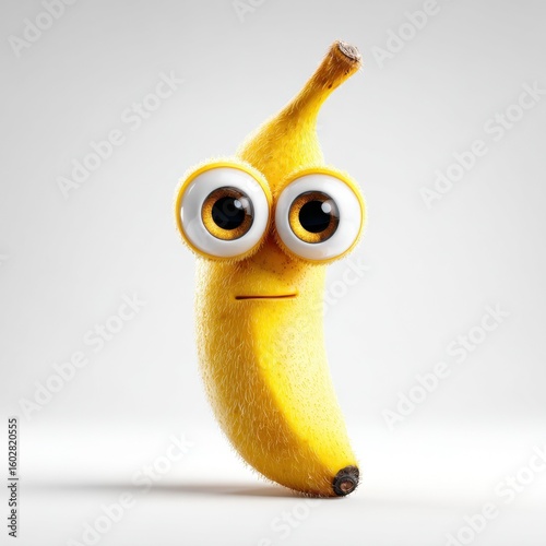 A cheerful banana stands upright with large eyes, looking up with a hopeful expression. Its unique personality brings joy and a sense of wonder to the creative scene, showcasing optimism