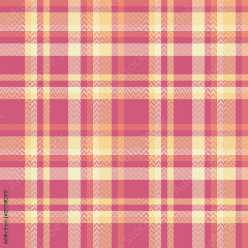 A cheerful, pastel plaid pattern in soft pink and yellow hues. This seamless texture is perfect for textile design, website backgrounds, or any project needing a touch of gentle, repetitive style.