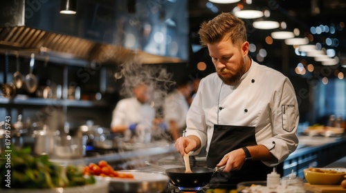 A chef demonstrates cooking techniques during a masterclass in a modern kitchen