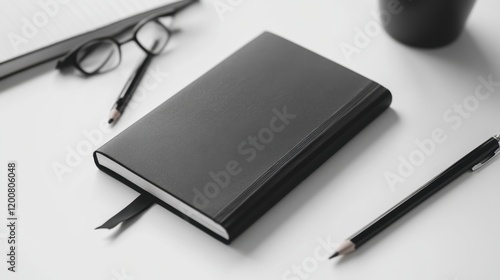 A chic and minimalistic flat lay with monochrome notebooks and sleek pencils, ideal for a modern and professional look.