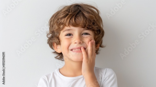A child with a pained expression, holding his jaw, indicating tooth pain.