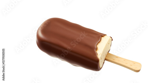 A chocolate-covered ice cream bar on a white background, perfect for dessert advertising. Generative AI