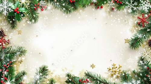 A Christmas frame with sparkling gold edges and falling snowflakes.