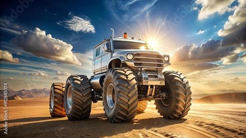 A Chrome Colossus Crushing Through a Sun-Drenched Desert generative AI
