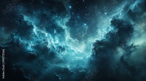 A Cinematic Exploration of a Sad Fantasy Space Theme in Cyan Color Tones, Capturing the Melancholic and Otherworldly Atmosphere with a Dramatic Visual Effect