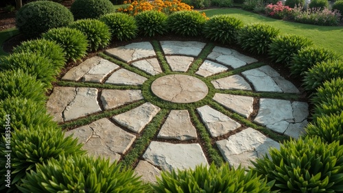 A circular horticultural pattern made of stone