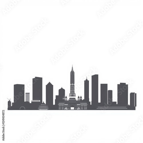 A city skyline obscured by fog and mist silhouetted skyline cityscape architecture illustration building city vector