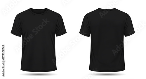 A classic black t-shirt, simple yet versatile, ready for your unique design or personal style statement, shown in front and back views against a clean white background.