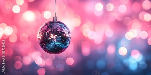 A classic disco ball with bright, colorful reflections, set against a pink and purple glowing background. Ideal for nightlife, parties, and music-themed content.