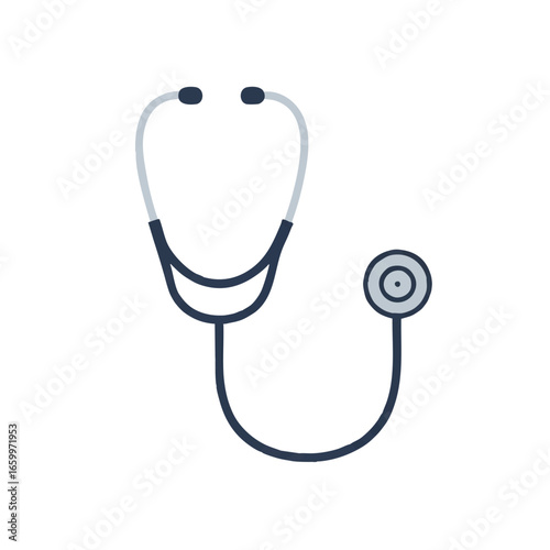 A clean 2D flat vector illustration of a professional medical stethoscope, rendered with minimalist lines and solid colors, isolated on a pure white background.