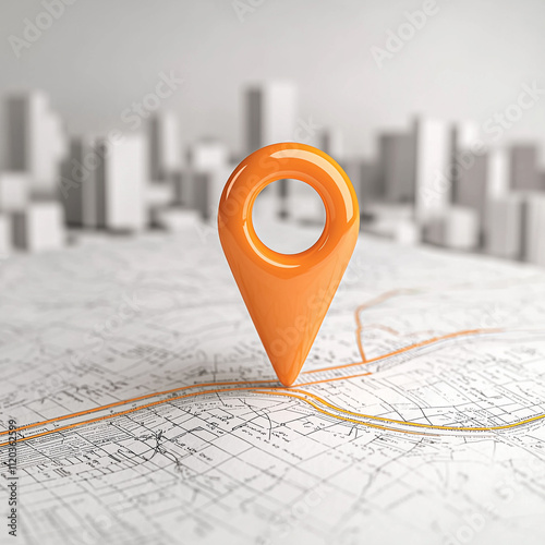 A clean and minimalist image of an orange location pin placed on a city map. The modern and stylish design is perfect for navigation apps