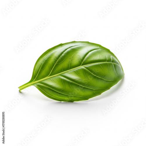 A clean and vibrant shot of a single basil leaf, isolated on a pure white background (3)