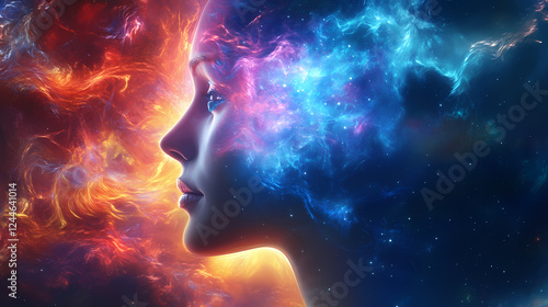 A clean design of quantum logic processes illustrated in vivid colors. Dream Logic & Surrealism. Illustration