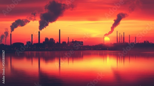 A clean industrial future with net-zero carbon factories, sustainable energy, and reduced emissions in a futuristic cityscape.