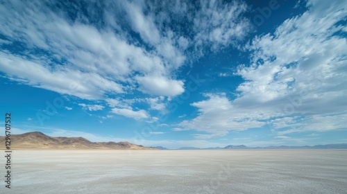 A clear blue sky with soft, fluffy white clouds spread across the horizon.