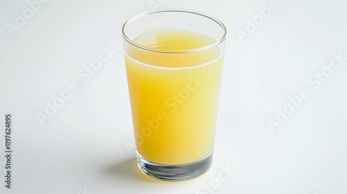 A clear glass of fresh apple juice with light yellow tones, placed on a plain white background with no distractions, highlighting the drink