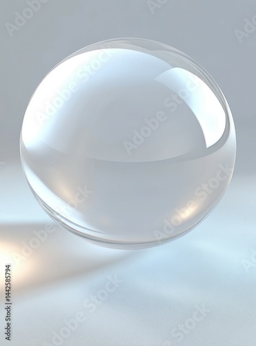 A clear glass sphere is casting a soft shadow on a surface