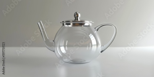 A clear glass teapot with a metallic lid, designed for serving tea.