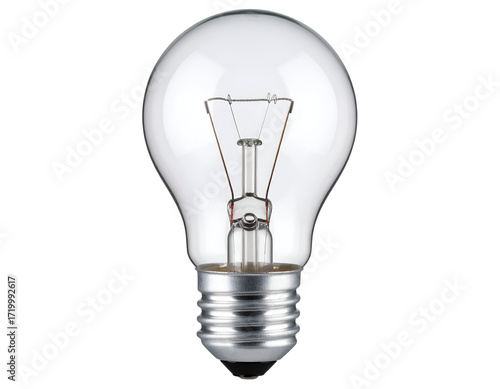 A clear light bulb with a visible filament, showcasing its classic design and illuminating potential.